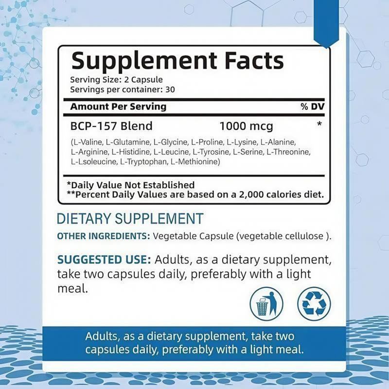 - 1000 mcg of bioavailable BPC‑157 (arginine-bound) for superior absorption